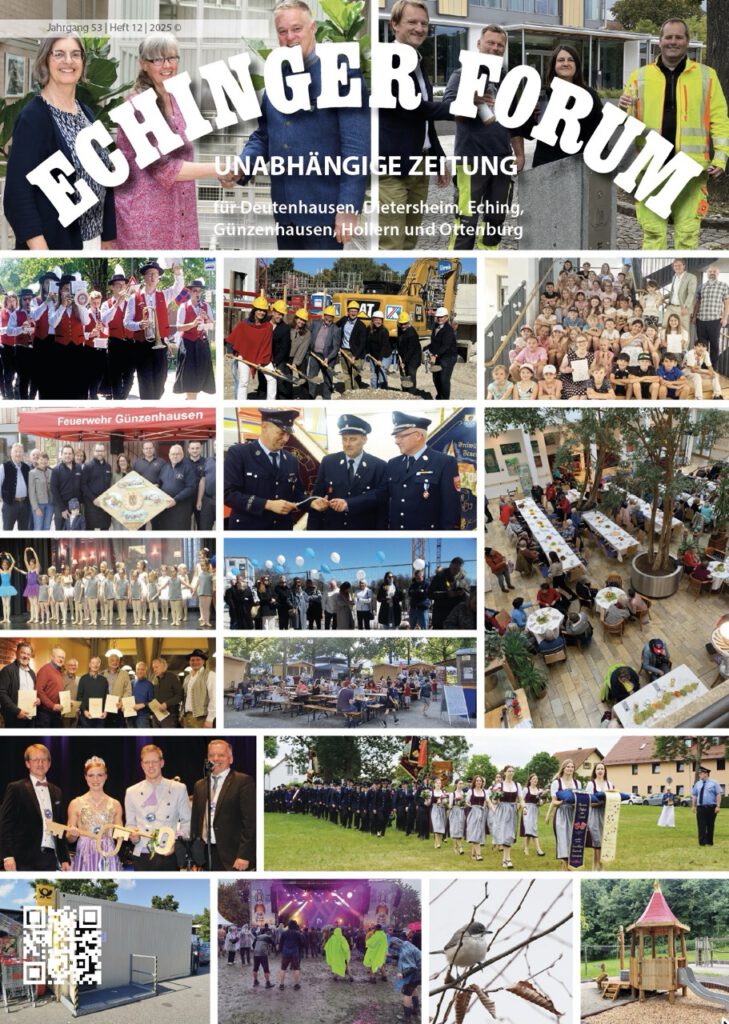 Das ECHINGER FORUM ist eine Zeitung, die von Echinger Bürgern für Echinger Bürger und die Bürger der Ortsteile im Ehrenamt erstellt wird. Im Gegensatz zu den anderen Nachrichtenblättern erhalten unsere Mitarbeiter keine Vergütung und erledigen alles unentgeltlich im Ehrenamt. Unsere Mitarbeiter kommen aus allen Berufszweigen und berichten über interessante Aktivitäten. Aus zeitlichen Gründen können wir nicht über alle Aktivitäten berichten.